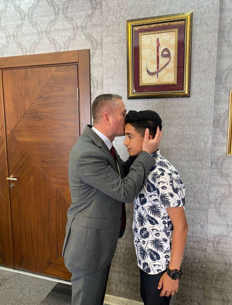 Öğrenci Demirci'yi anlından öperek başarısından dolayı tebrik eden Kökrek, öğrenci Demirci ile bir süre sohbet ederek kendisine tablet hediye etti.