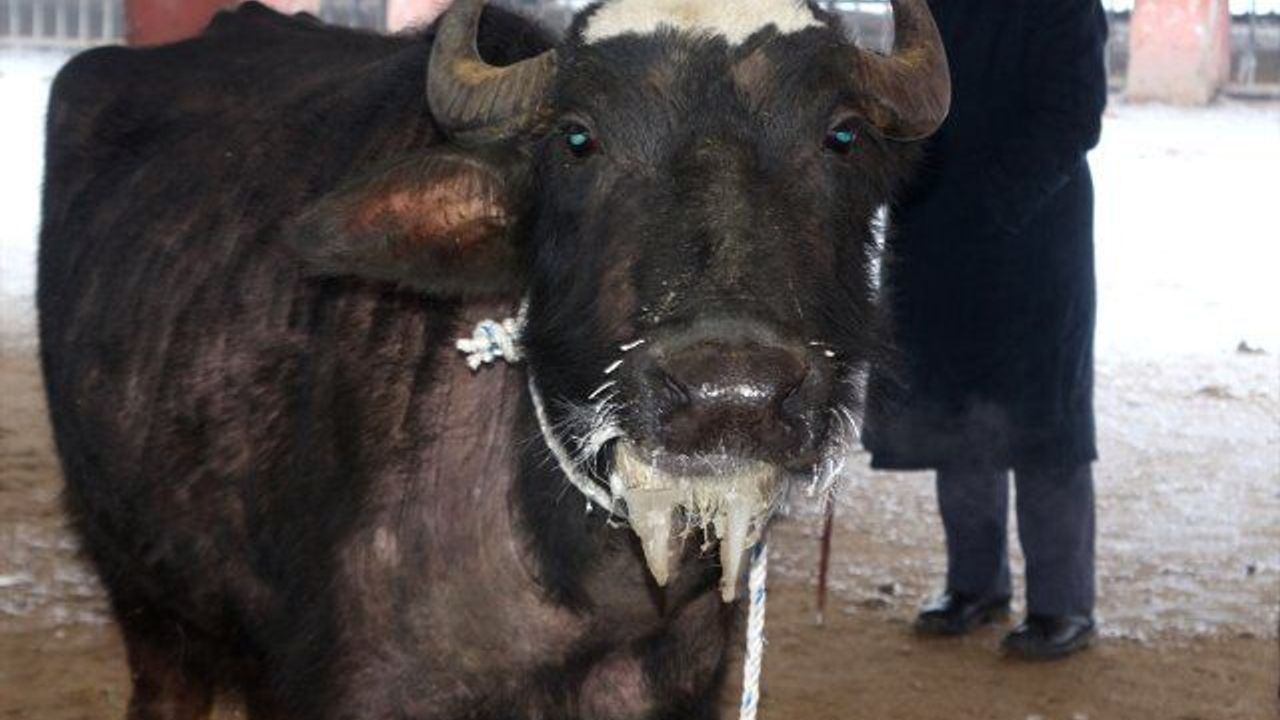 Hayvanlar da zemini buz tutan pazarda yürümekte güçlük çekti. Bazı hayvanların da tüyleri buzla kaplandı.
