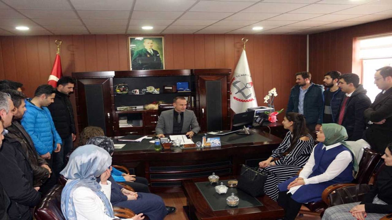 Ağrı İl Milli Eğitim Müdürü Mehmet Faruk Tekin, “Daha Çocuk Yaştayım ” projesi kapsamında çocuk istismarını önleme ve bilgilendirme eğitimi tamamlanan 30 rehber öğretmeni makamında kabul etti. Öğretmenlerle bir süre sohbet eden İl Milli Eğitim Müdürü Tekin, “Bu proje kapsamında 30 rehber öğretmenimizin çocuk istismarını önleme ve bilgilendirme eğitimi tamamlanmıştır. Bu öğretmenlerimiz, il genelindeki tüm okullarda görev yapmakta olan diğer rehber öğretmen ve branş öğretmenlerine eğitim verilecektir”dedi. Daha sonra rehber öğretmenlerin istek ve taleplerini dinleyen İl Milli Eğitim Müdürü Tekin, çocuk istismarını önleme ve bilgilendirme eğitimini tamamlayan öğretmenlere kurs belgelerini verdi.