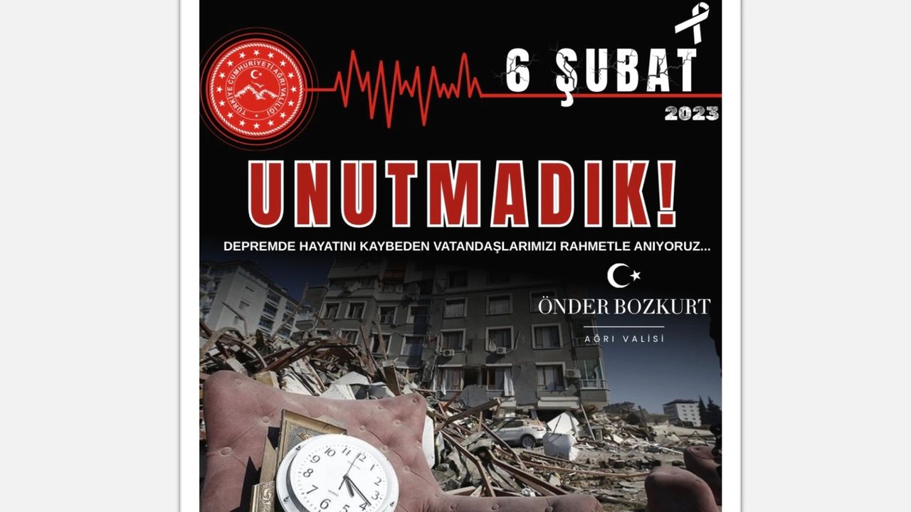 Vali Bozkurt, Ağrı Valiliği’nin resmi sosyal medya hesabı üzerinden yaptığı paylaşımda, 6 Şubat’ın milletimizin yüreğine ateş düşüren bir tarih olduğunu vurgulayarak, bu büyük felaketin acı, sabır ve dayanışmanın adı olarak hafızalara kazındığını ifade etti.